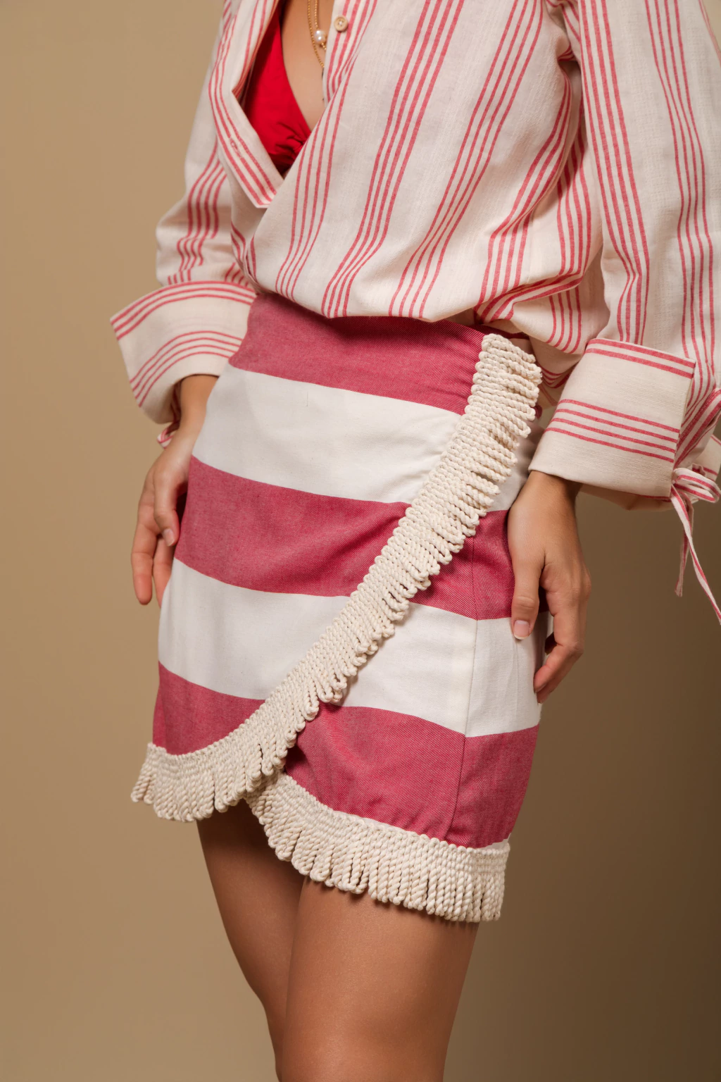 Saia, transpassar em tecido 100% algodão com franjas também em algodão! Peça leve, fácil, versátil.